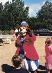 Noel Edmonds and Mr Blobby travelling through the train gates just before what was then the bacon kiosk.... In the background the Enterprise is comeing down from it's full point... We also have a photo of the then CBTV castle !! This was taken in May 1995 as was Noel and Blobby...